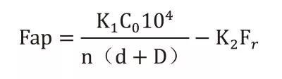為了防止軸承高速運(yùn)轉(zhuǎn)時(shí)由于離心作用在滾子與滾道之間產(chǎn)生有害的滑動(dòng),軸承所需的最小載荷可由下式估算: